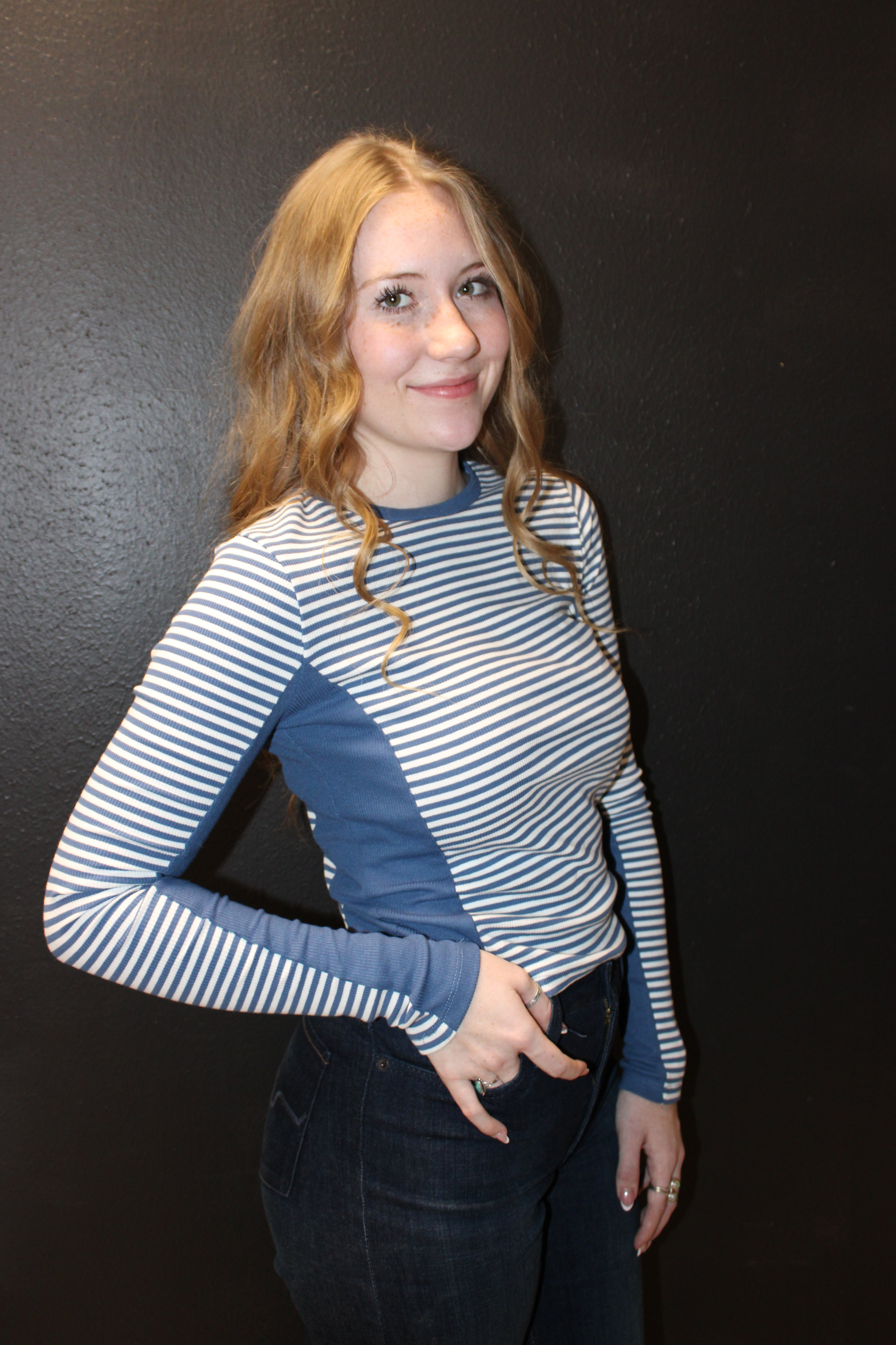 - Blue and white striped